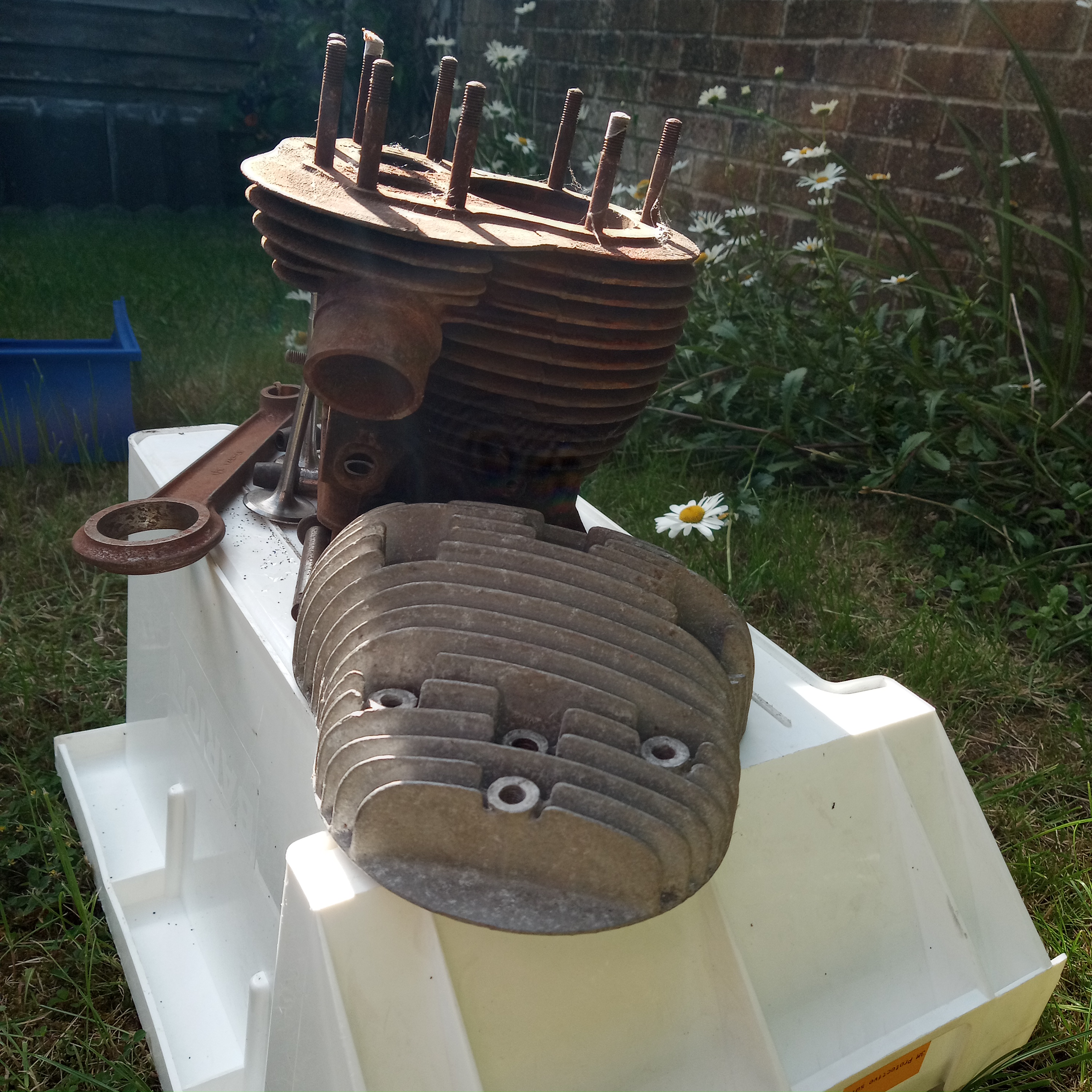 Cylinder, head, tappet cover, new vales and guides and con rod.