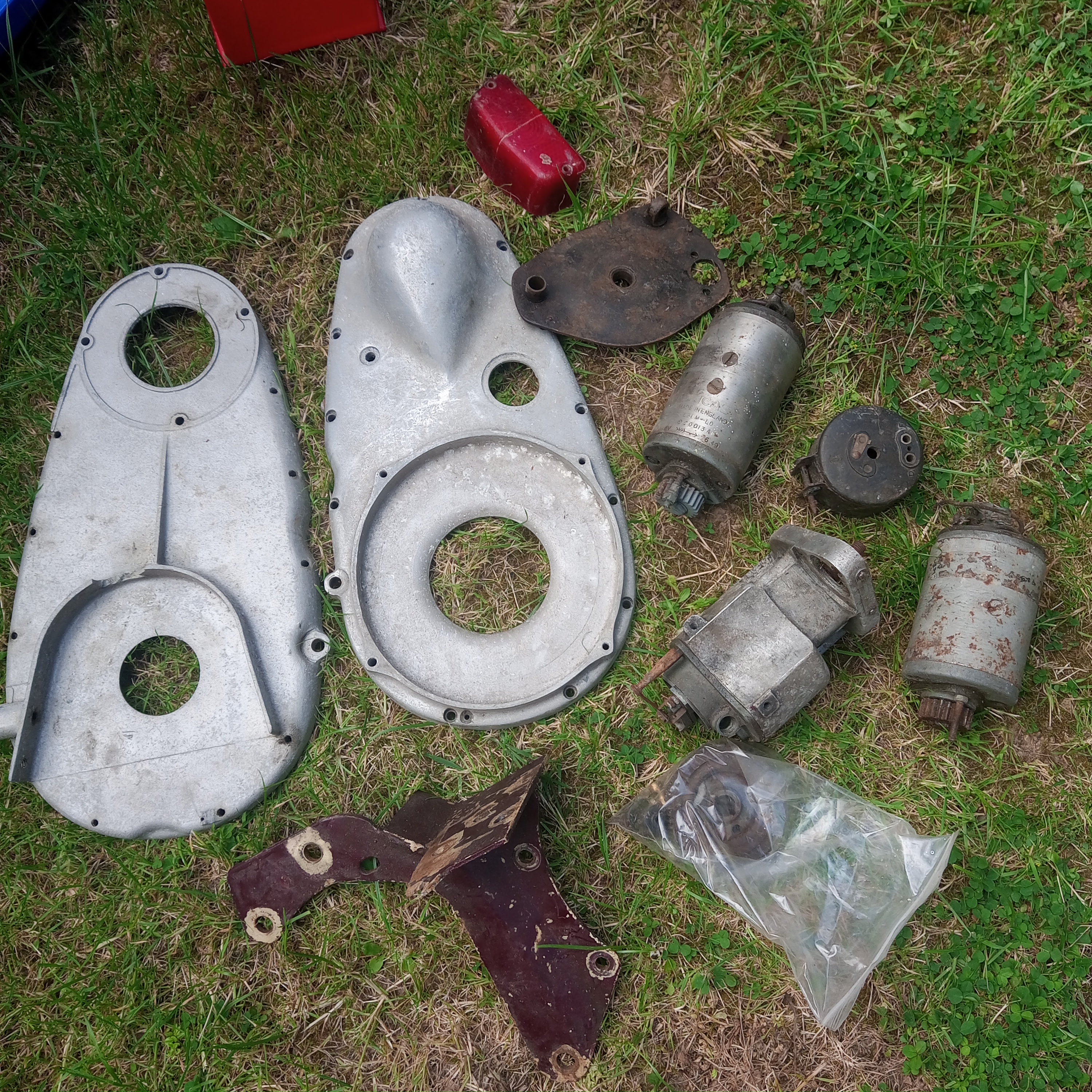 On offer is primary drive cases, mag dyno, small dynamo? front brake hub, single engine plate and an original rear lenses.
