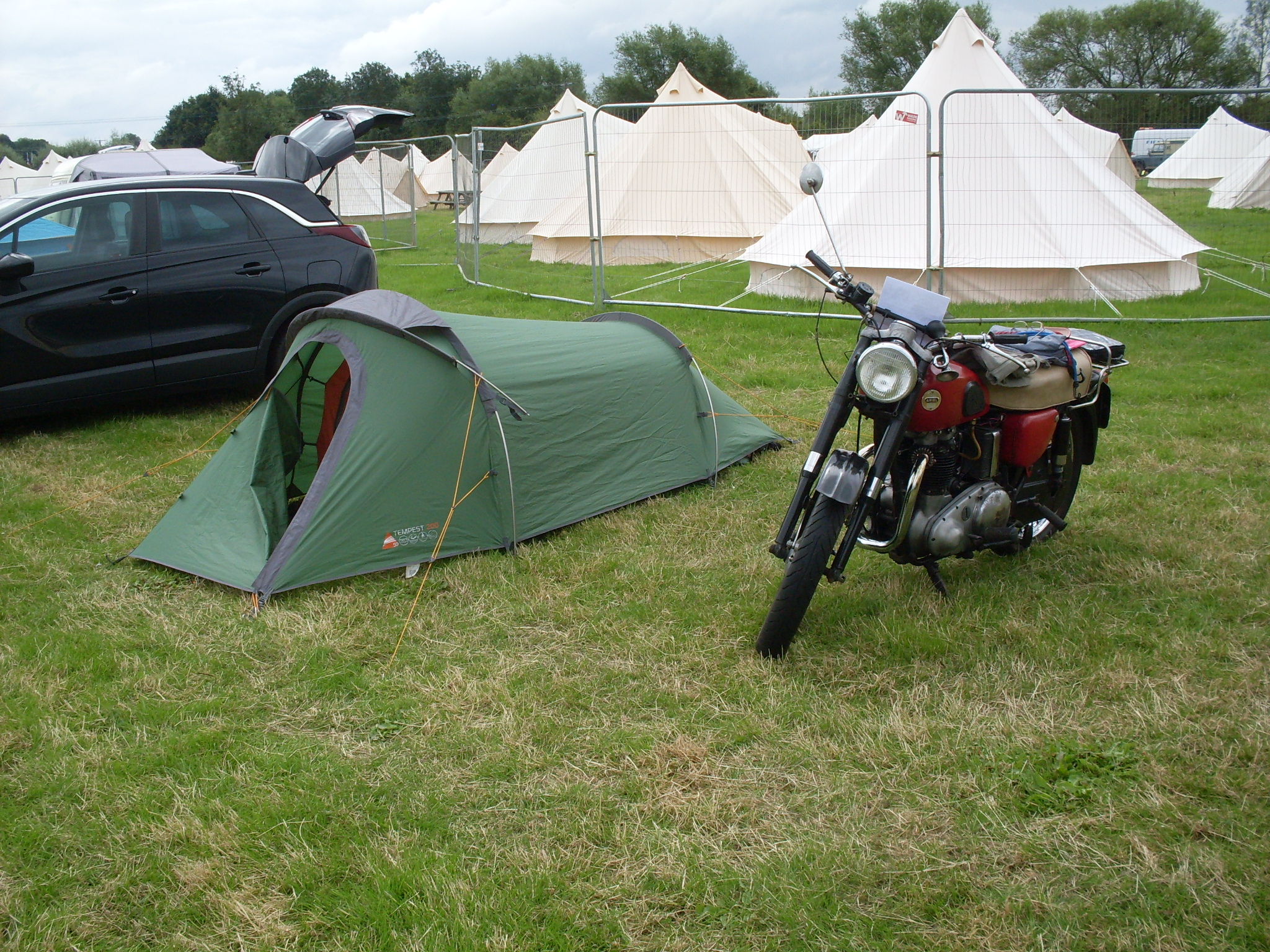Not a lot of coast on view but the road was surprisingly empty so it was a nice enough run. However I didn't have the time to go off searching for some sights so the only pic is going to be of bike and tent at journey's end! (The other side of the camping meadow was a river bank so that must be almost 'coast'!)