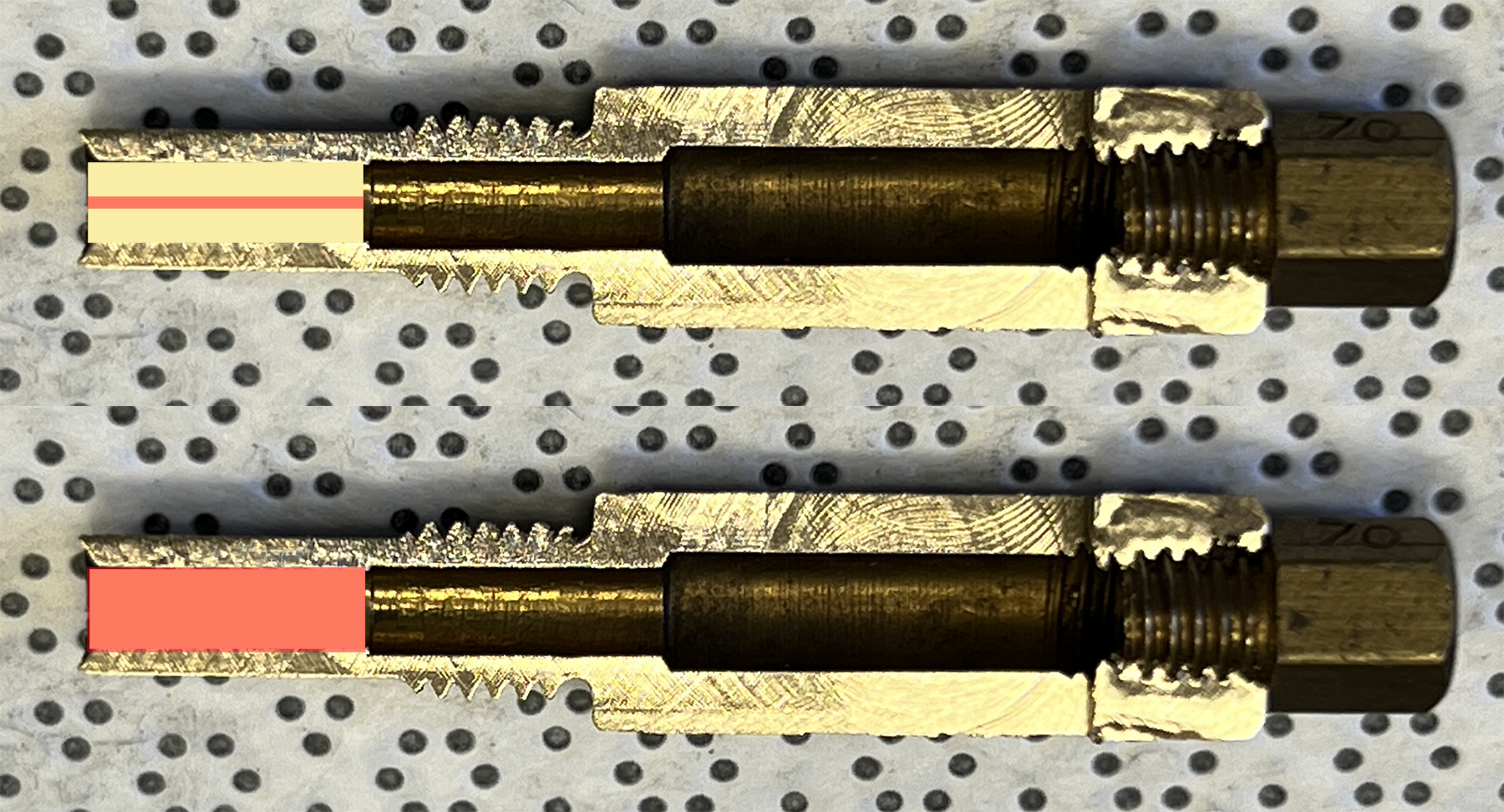 So, why did the depth of the tap drill extend so far beyond that needed for the main jet threads? The same needle jets were used in carburetors for small motorcycles, which had tiny main jets, and large motorcycles with huge main jets for alcohol. Having a one-size-fits-all large chamber in all of these provides a "ballast volume" of fuel to avoid fluctuations in fuel/air ratio when, say, a throttle is suddenly snapped open.