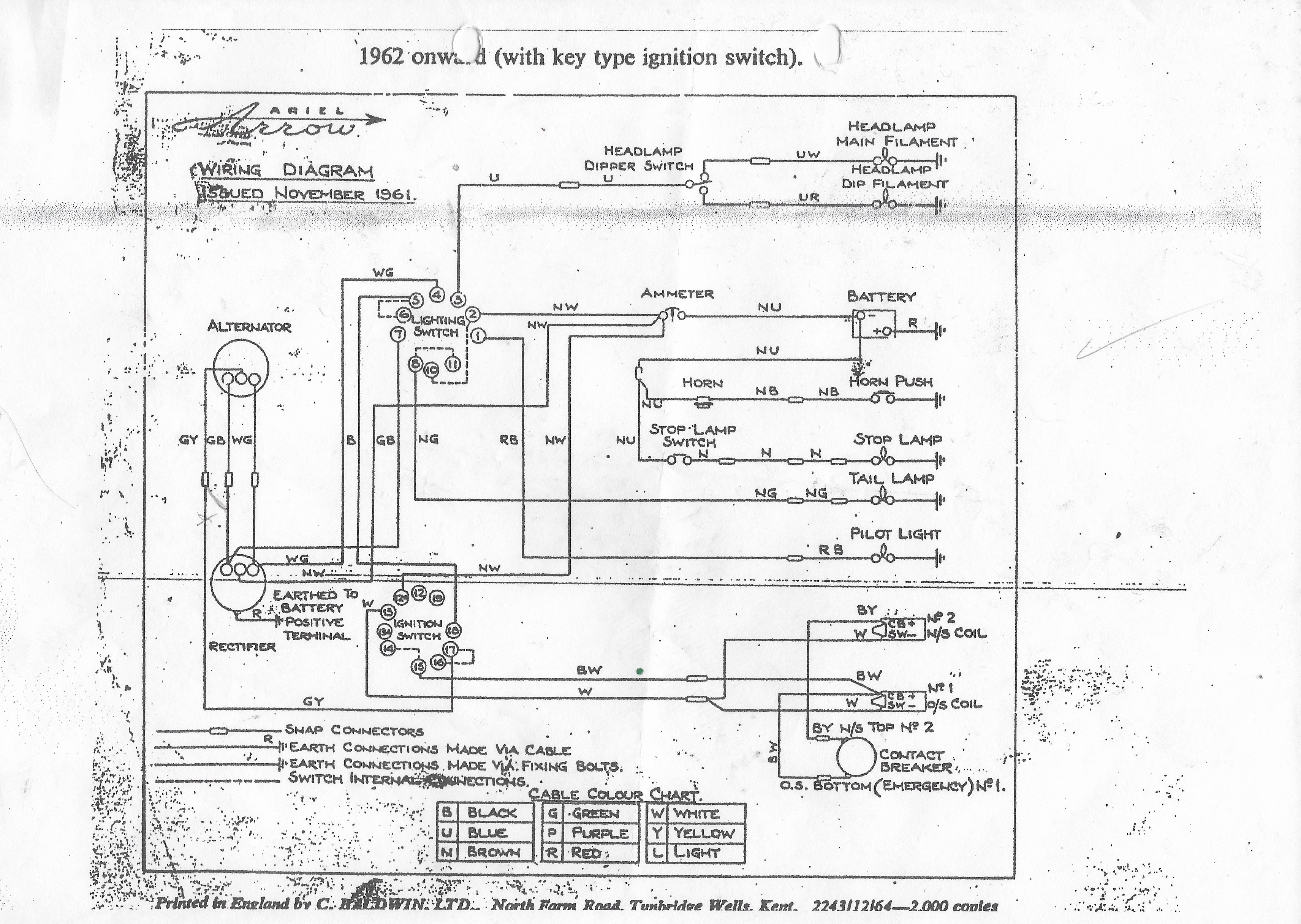 The Ignition switch on my bike is as you say the key type. At the moment, I am trying to assess whether the wiring on the switches are working correctly. I am also looking at the rectifier. the output from mine is only 6.4 v. i think it should be nearer 7.0 V. I have bought a second one, which gives very similar results. This leaves me unsure what to try next. I would like to take you up on your offer, once i have finished checking the switches. I also have a Lucas Manual, which shows how to test the alternator. I am trying to understand it, so that I can test mine. These sort of problems take me awhile to do. Many thanks for your kind offer.
