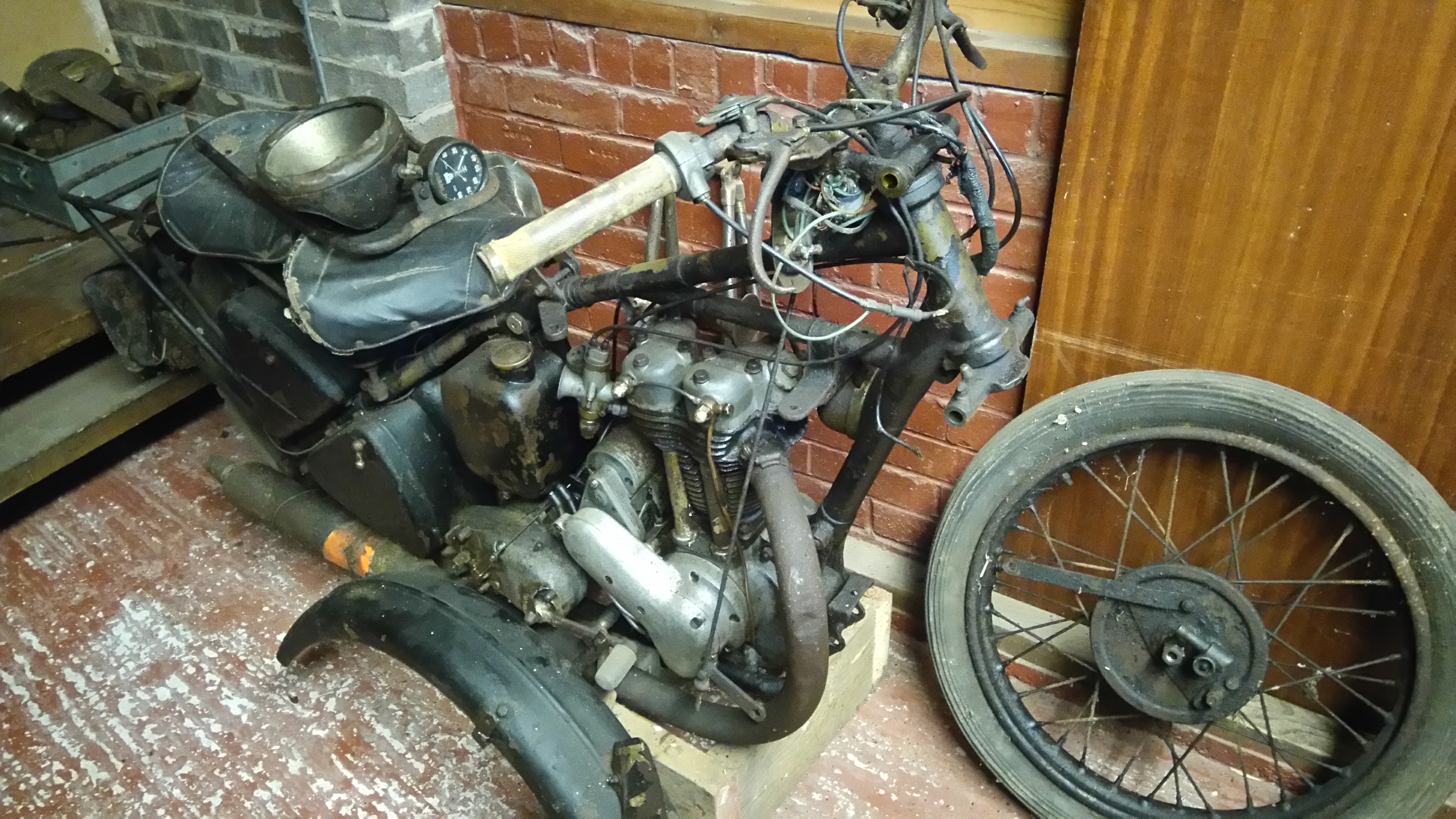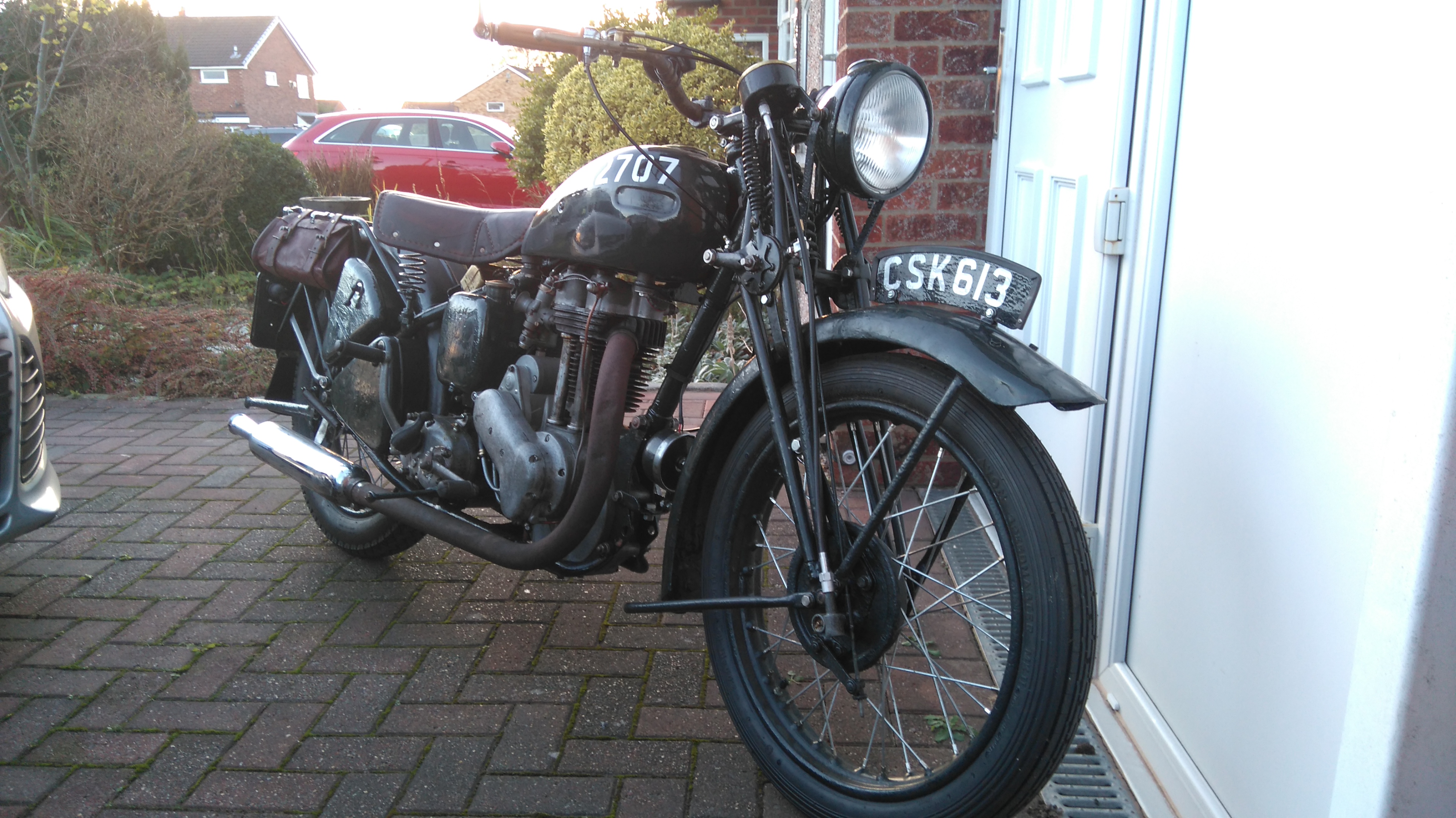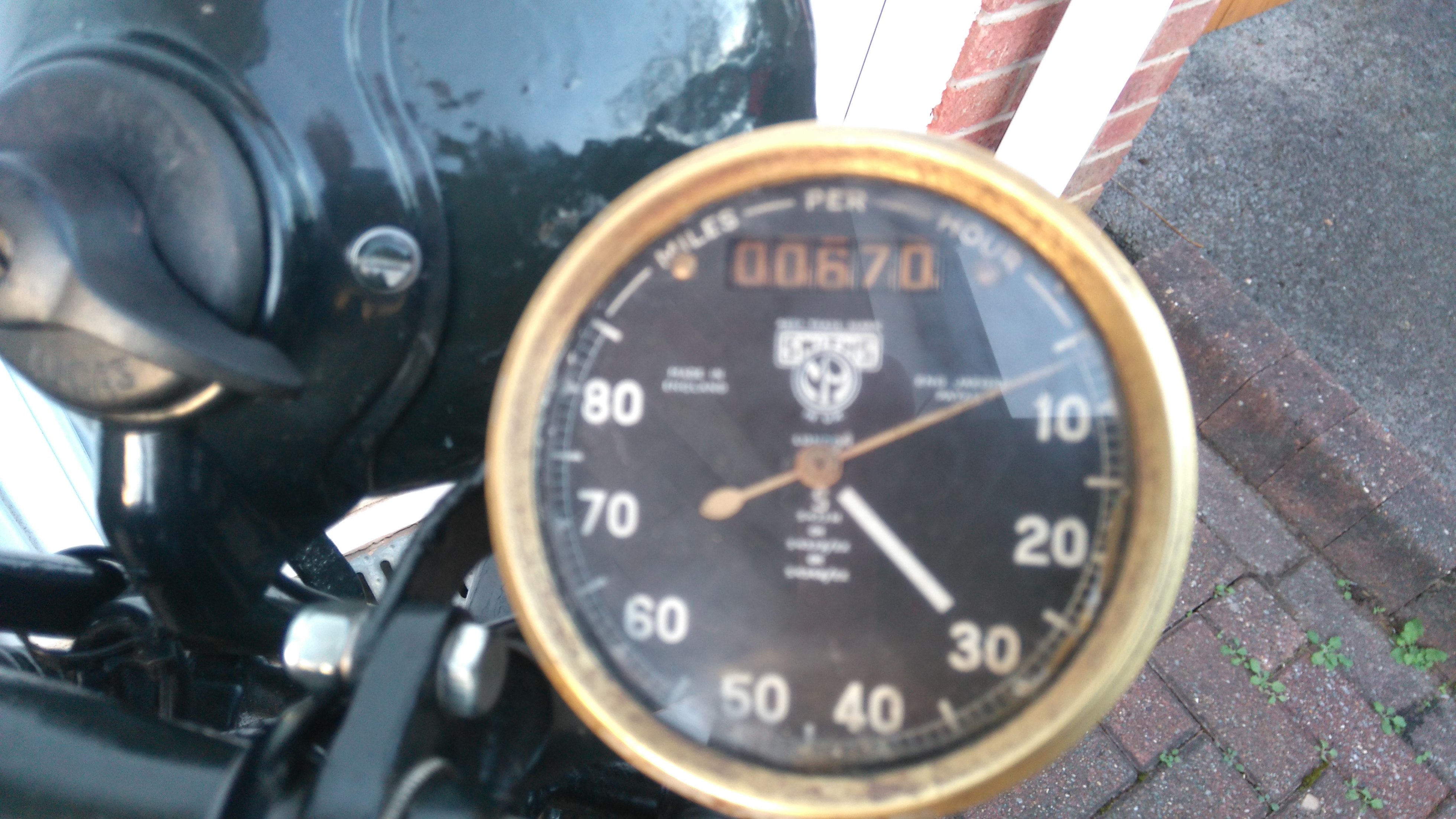The numbers on the tank were discovered by the previous owner as he'd made a start by part restoring the petrol tank, found the numbers under the old paint and taken a tracing. The contract plate on the rear mudguard was discovered as I made a start on restoring the very badly rust eaten rear mudguard. I'm hoping that the 670 miles shown on the speedo is correct and certainly the engine was in good nick when I stripped it with little or nothing caught in the sludge trap and no discernible wear on the bore.