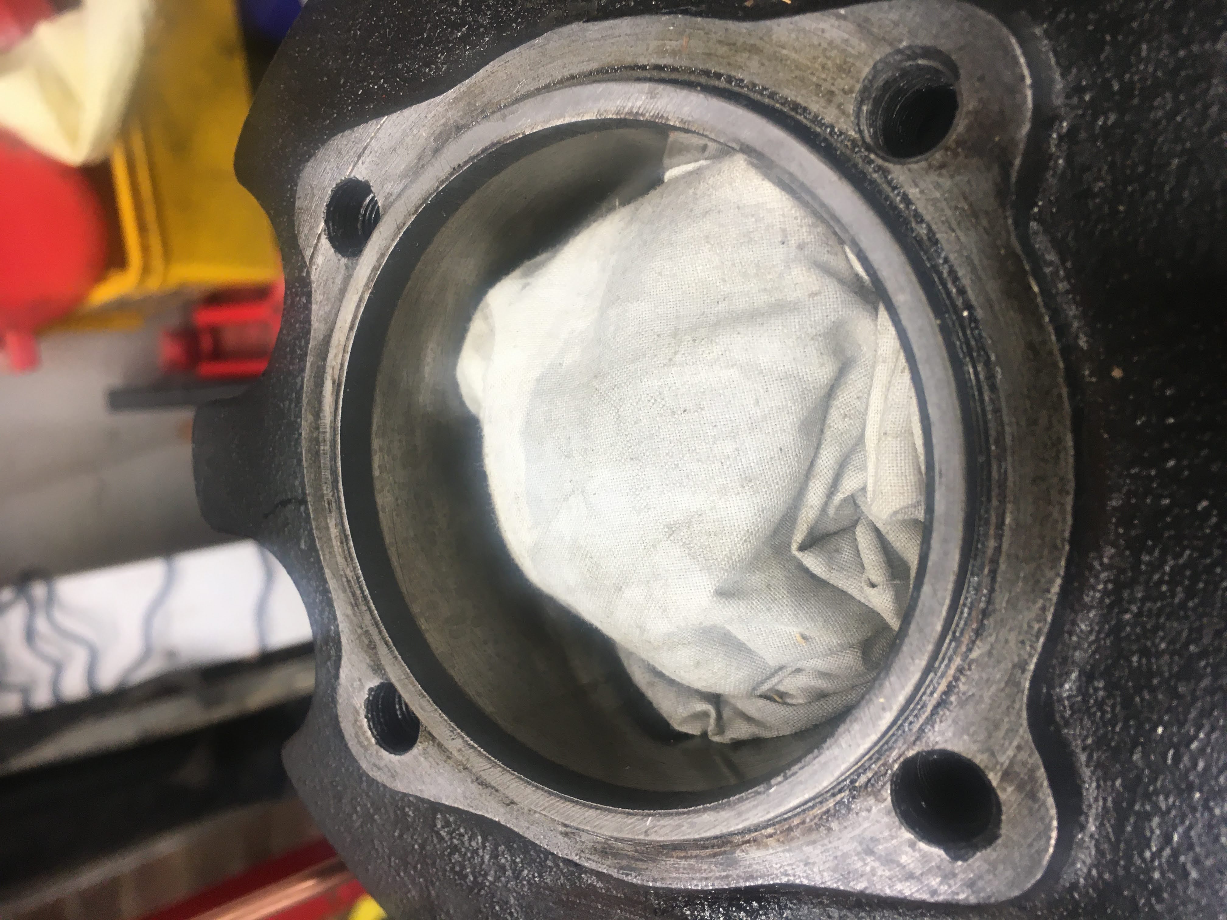 By comparing the two cylinders on the picture that I posted you see that the larger finned cylinder has a flat circle around the liner.
