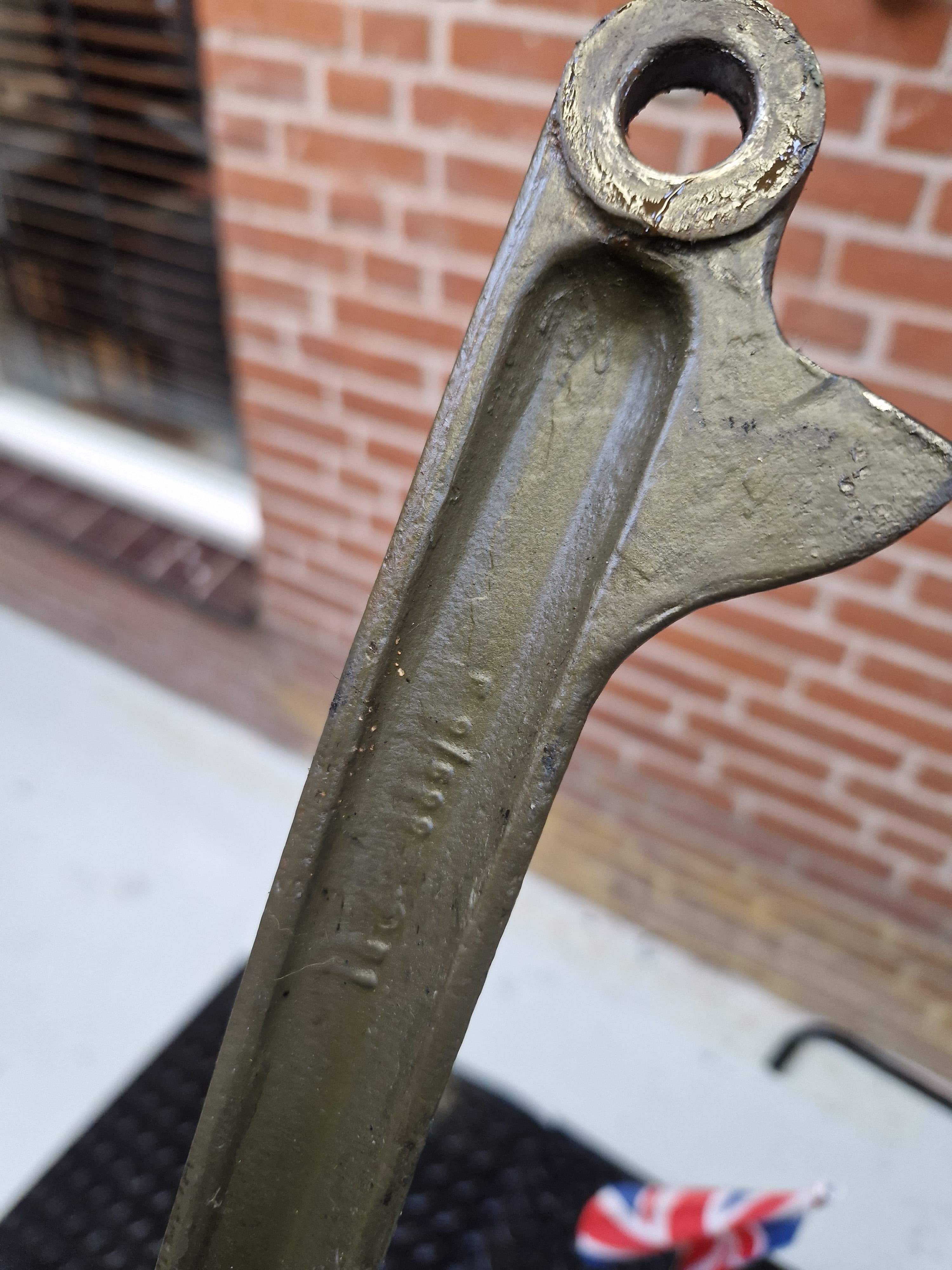 I took the stand off this morning before work, I was curious. It seems to be original, it has a casting number, startin with E9, can't read the rest (maybe E9/699?). My partsbook only specifies the 5500-36 not the E9 number. So it might indeed be bent straight in the past. I'll try to bend it back a little, is that possible by just putting some heath in it?