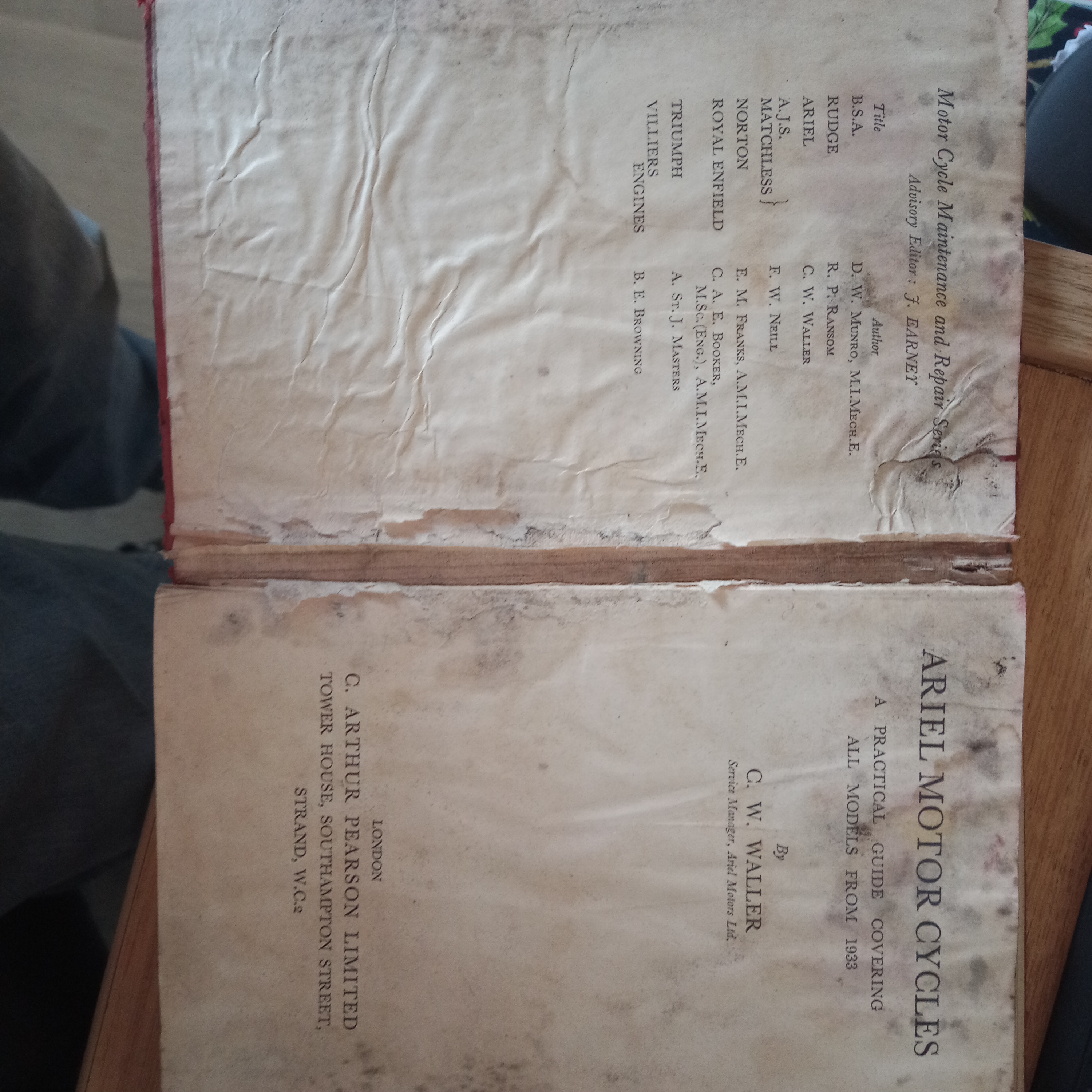 Book Ariel by C W Walker. All models from 1933. Covers all single, twins and fours.