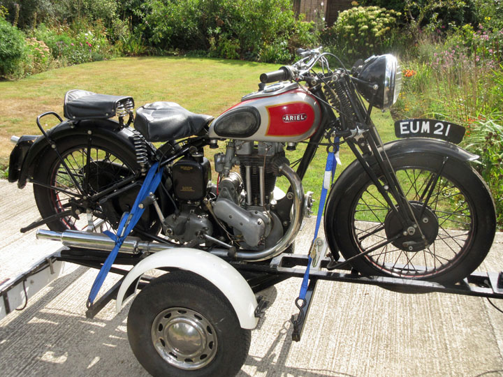 The machine is a 3-owner one and began life as a 1937 NH Red Hunter. Then prior to 1950 it had a 1940, ex-Air Ministry 500 engine fitted and became bolted to a sidecar. The engine is an enclosed valve type though perhaps it began life as a 500 SV (engine number is a CH- and has what would have been the oil drain for the valve chest between the pushrod tubes blanked off - it also has the oil drain that would have come from the OHV inlet to the crankcase at back of the barrel blanked off too, so who knows?). At this time the owner was an AA patrolman - I found his insurance certificate from 1960 among the paperwork. Having spoken to the chap who restored the bike in the 90s, he recalled that it had many BSA parts fitted which isn't surprising as the owner would have had access, legitimately or otherwise, to a ready supply :D