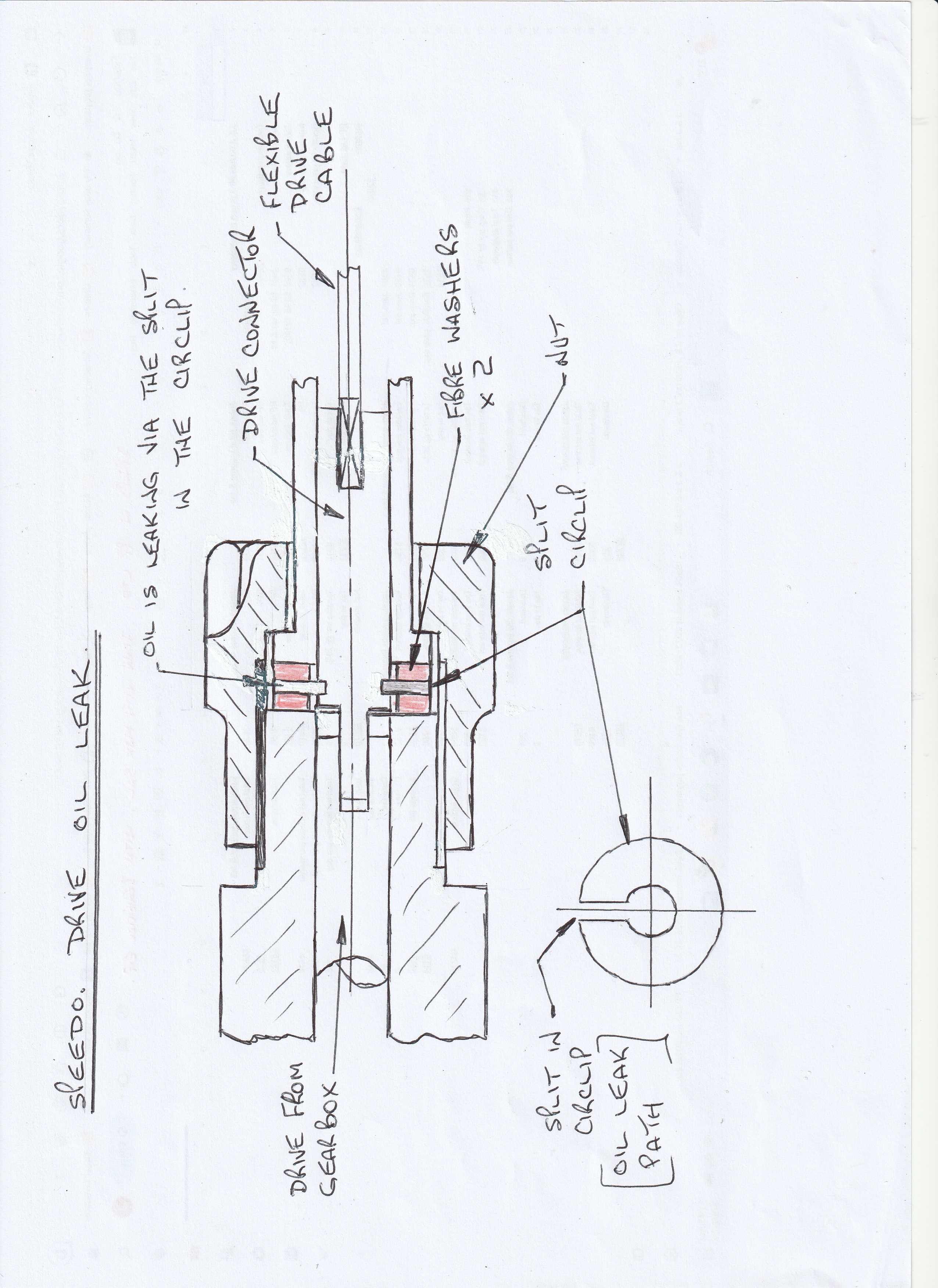 The oil is mainly prevented from leaving by a spiral groove in the spindle, which as it rotates returns the oil to the gearbox. No problem when in daily or weekly use.... A small fibre washer under the thing that goes between the speedo cable and the bush does reduce the drip.