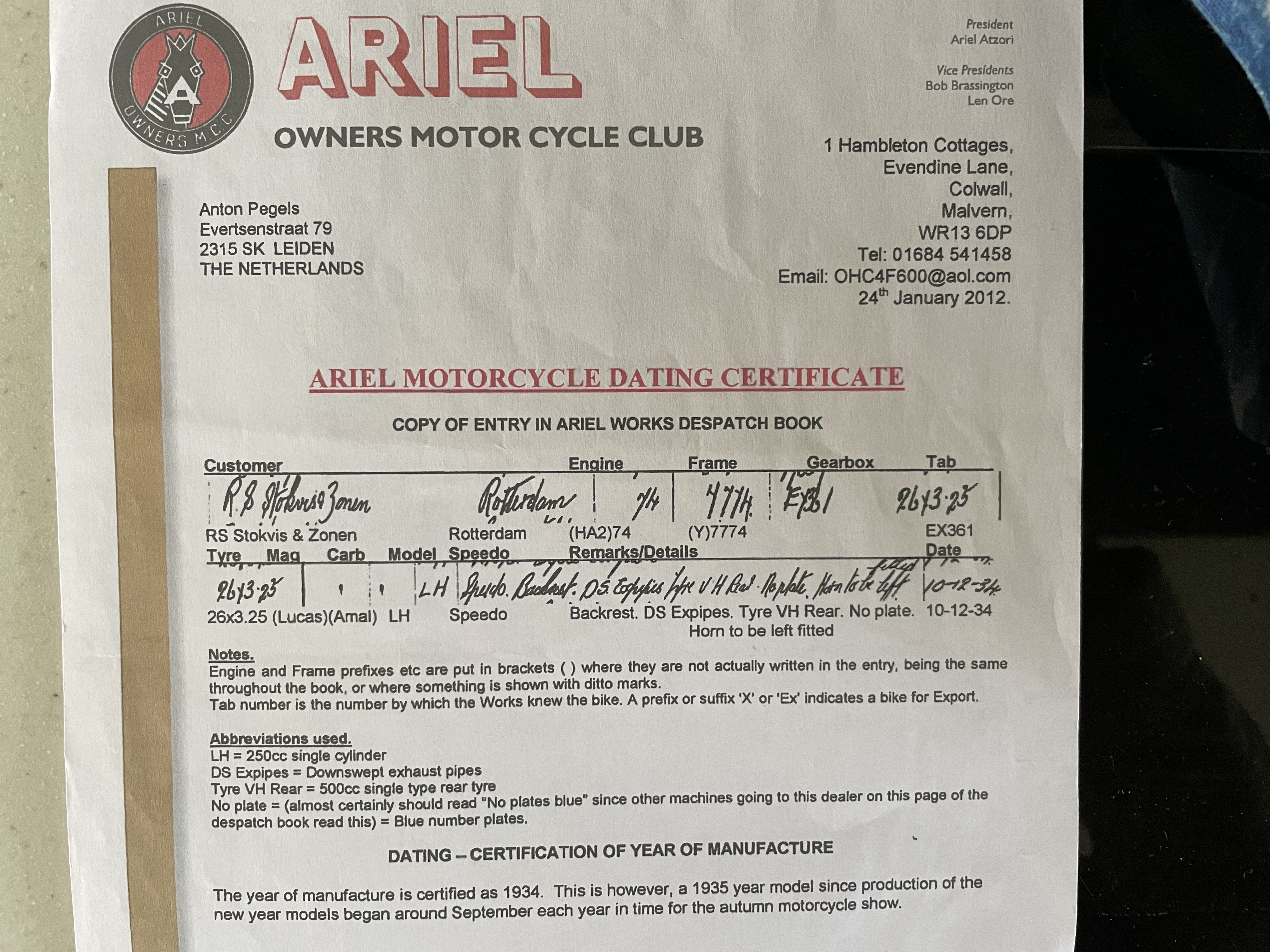 who told you you have a 1934 LH ?